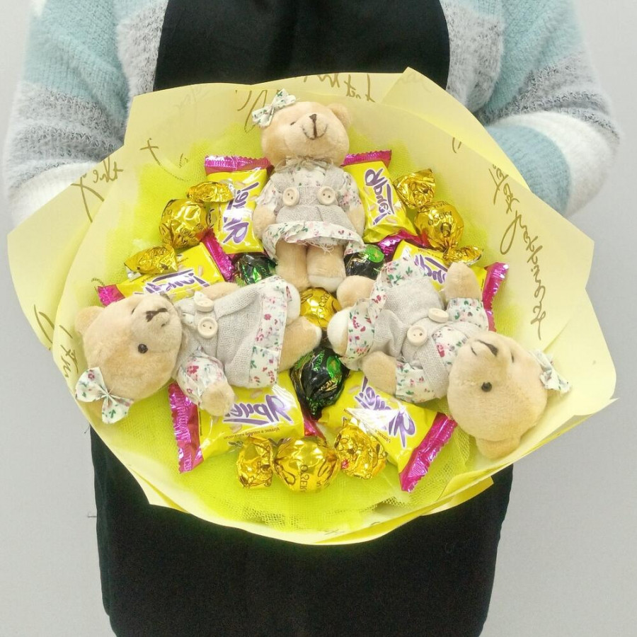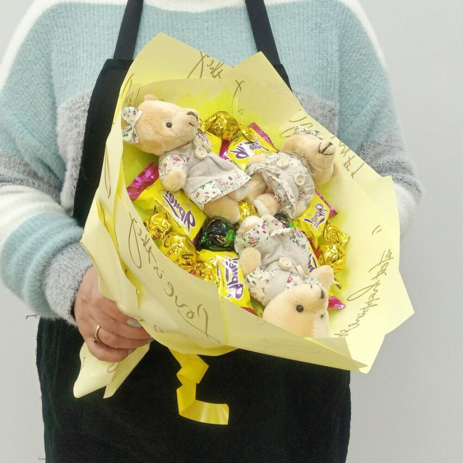 Букет из игрушек медвежат и конфет в Мценске
